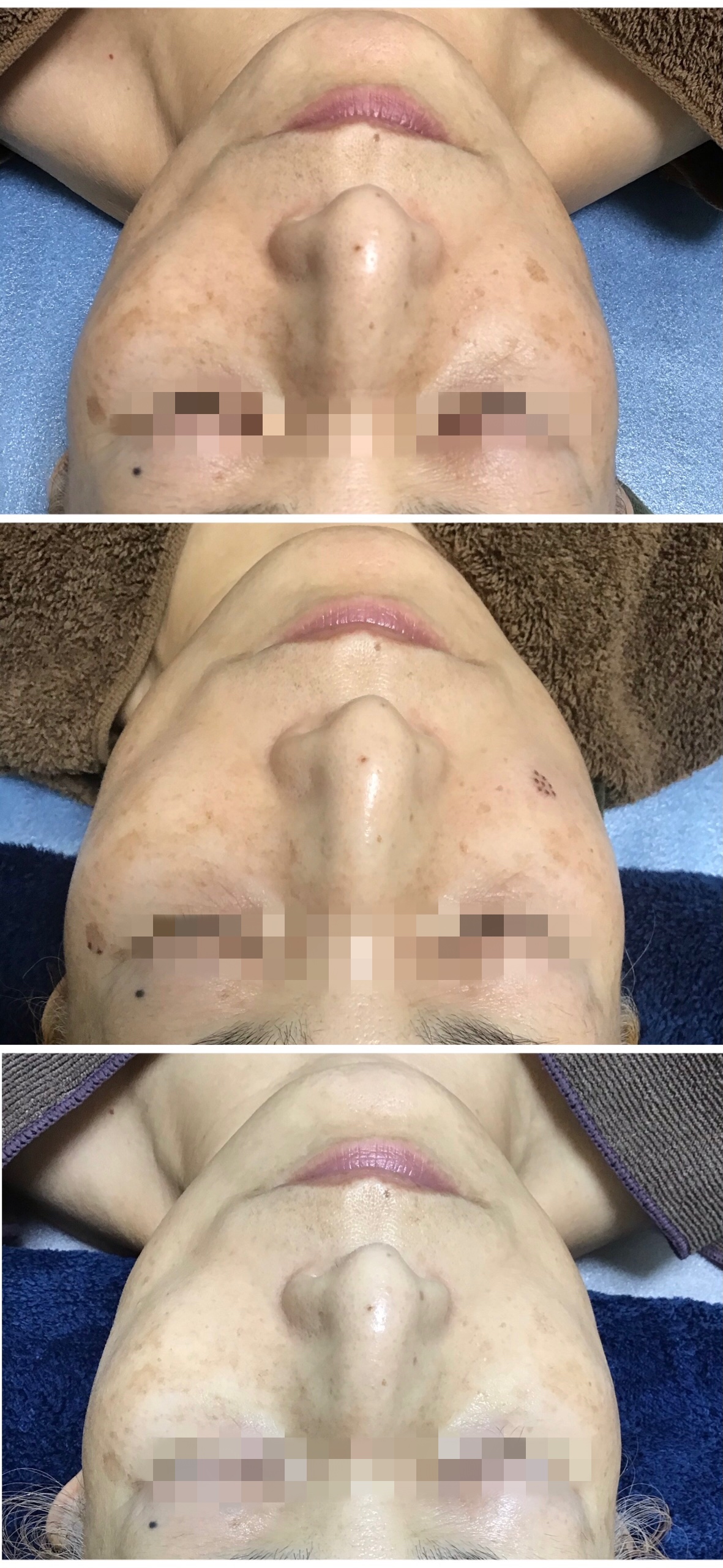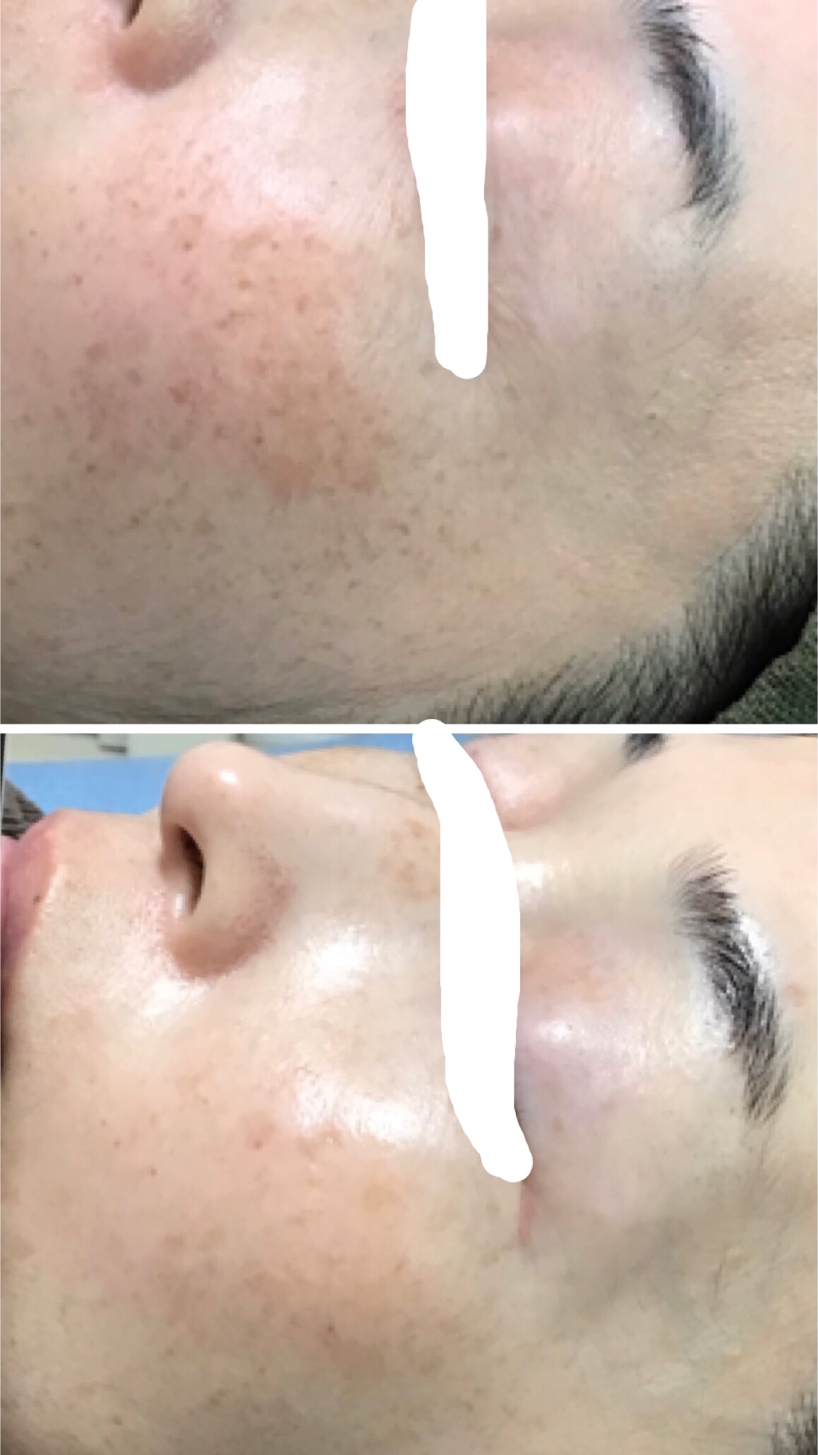 A.肝斑の部分は施術できません。肝斑の下にシミがある場合、薬の服用をしていただき、肝斑が落ち着いてきたら施術可能です。